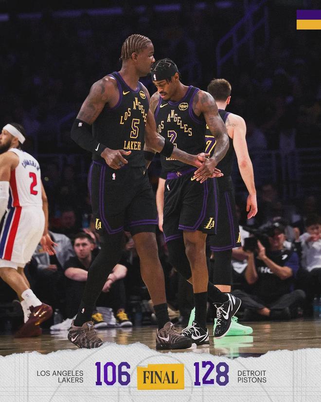 哈登14投6中,拿到21+3+5。威少10中4,得到12+3+4。剛剛結束的另一場比賽,湖人主場106-128不敵活塞。最近5場比賽,湖人隻有1勝4負。快船狂贏41分,湖人慘敗22分,洛杉磯冰火兩重天。湖人末節崩盤,單節18-32輸了14分!