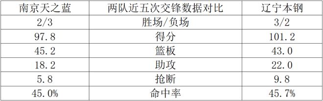 兩隊近五次交鋒數據對比: