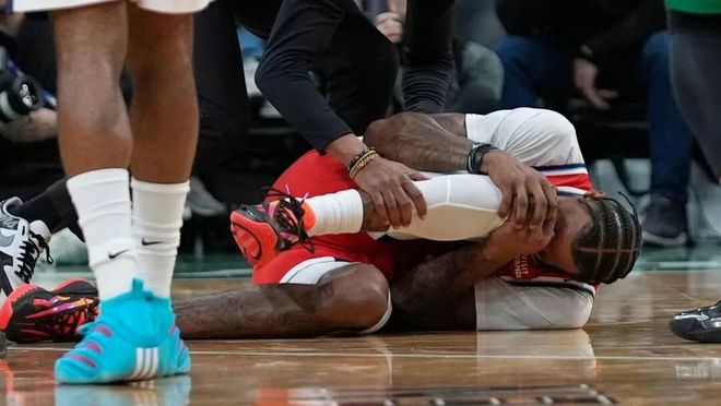 這已經是他本賽季第二次遭遇右膝傷勢,上周剛複出找回狀態,如今又要長期休戰,偏偏球隊剛在主場115-146慘敗凱爾特人,6連勝的勢頭被徹底終結,接下來還要接連麵對勇士和尼克斯,西部第12的排名岌岌可危。