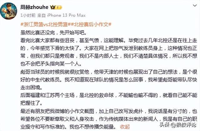 最近有朋友把我微博的小作文截圖,加上自己改寫發虎撲,我說話是有分寸的,也希望各位不要斷章取義和人身攻擊,作為傳統媒體出來的新聞人,我是有自己的職業操守和寫作標準的。我也不想傳播負能量。
