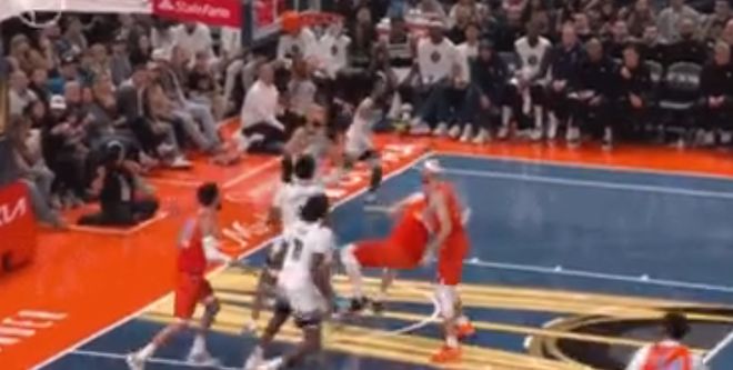 戈貝爾將卡魯索空中打翻重摔在地,戈貝爾被吹罰一級惡意犯規。