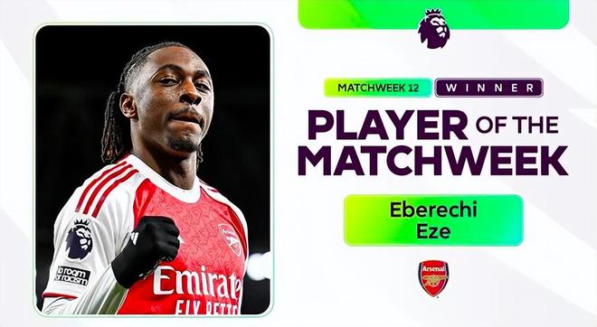 就在同一時間,英超官方宣布,阿森納中場埃澤當選英超第12輪最佳球員。在阿森納4-1大勝托特納姆熱刺的北倫敦德比中,埃澤迎來個人首次德比首發,便上演職業生涯首個帽子戲法,幫助球隊取得英超時代對熱刺的並列最大分差勝利。他也成為曆史上第四位在各項賽事北倫敦德比中獨中三元的球員。