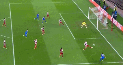易邊再戰,第52分鍾,奧林匹亞科斯再度利用定位球威脅,埃澤精確吊入禁區,塔雷米機敏衝頂扳回一球,2-3皇馬。