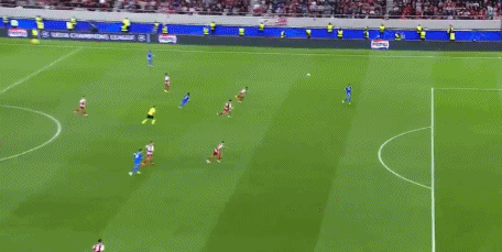 隨後銀河戰般繼續狂攻,第33分鍾,居萊爾長傳找到姆巴佩,後者橫敲,熊皇居萊爾兜射入網,但VAR示意姆巴佩先越位,進球被吹。第36分鍾,皇馬又錯失必進球良機!維尼修斯反擊橫敲,居萊爾麵對空當竟選擇回傳,姆巴佩立刻再分楚阿梅尼,後者轟出重炮擊中橫梁。皇馬半場已經把奧林匹亞科斯的防線衝成篩子,但比分依舊維持3-1。